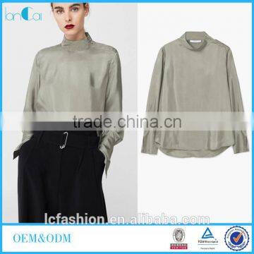 Autumn Women's Shirts Blouses 2017 100% viscose Rounded Neck Long Sleeve blouses