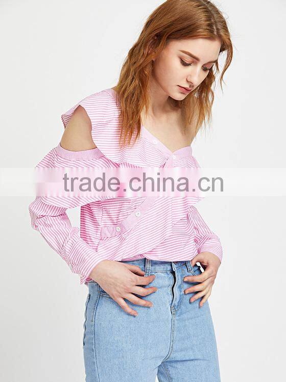 More product details | -- Pink Stripe Women Shirt -- Easy Washed -- High quality -- Competitive price -- Made in China |