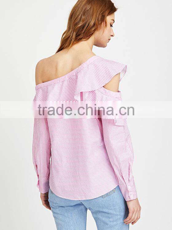 Product Name | 2017 New Blouse Neck Designs Pink Stripe Women Shirt LC8294 |