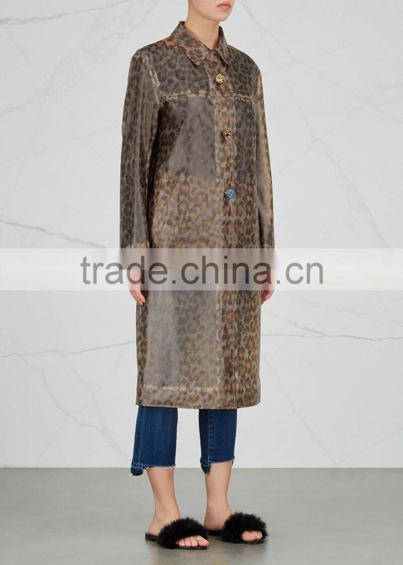 Wholesale Ladies Apparel Tonal Brown Transparent Rubberised Raincoat(DQE0362C)