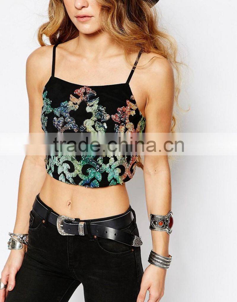 halter neck crop top sequins lace