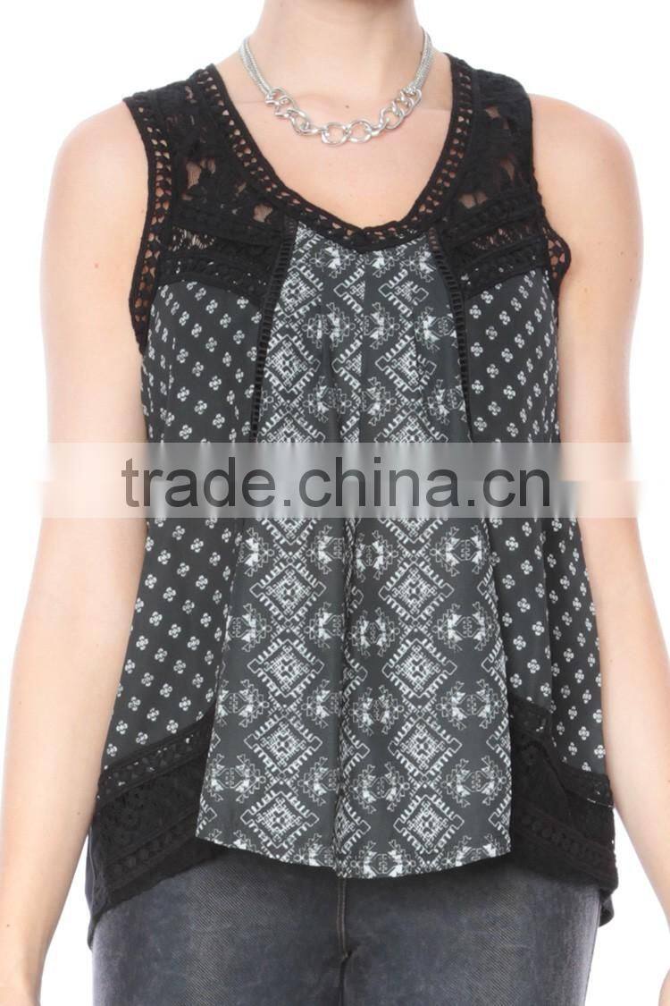 Lace Mixed Print Panel Swing Tank Italy Clothes Wholesale