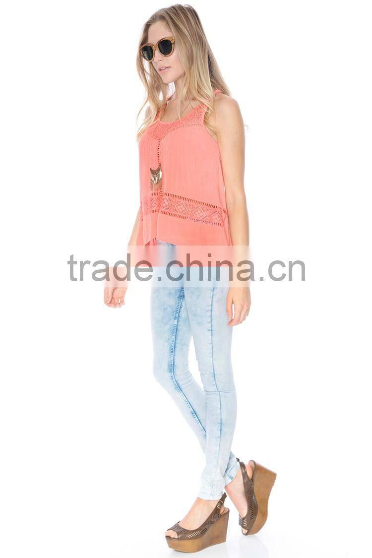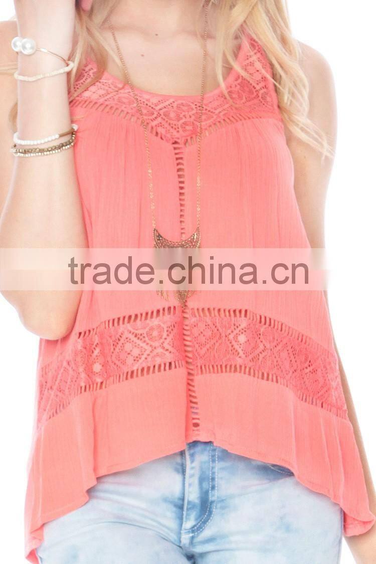 Lace Panel Gauze Tank Top Wholesale Designer Clothing