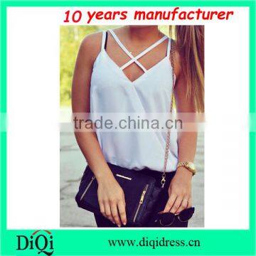 Crisscross Back Cami Top Wrap Front Ivory Color Tank Tops