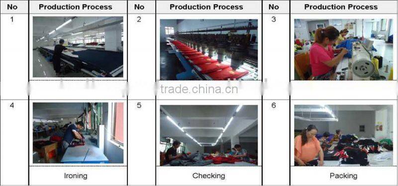 | PRICE | 1.As on the position of manufacturer for over 15 years,we get a good cooperate relationship to the fabric,accessories suppliers.In this way,we have competitive prices from the market. 2.We have been exporting garments to USA, Canada, UK, Europe, Australia, East Asia,South American,etc for over 15 years.We know well to give you the best suggetion to meet the cost performance to different markets. | ||||||||||||