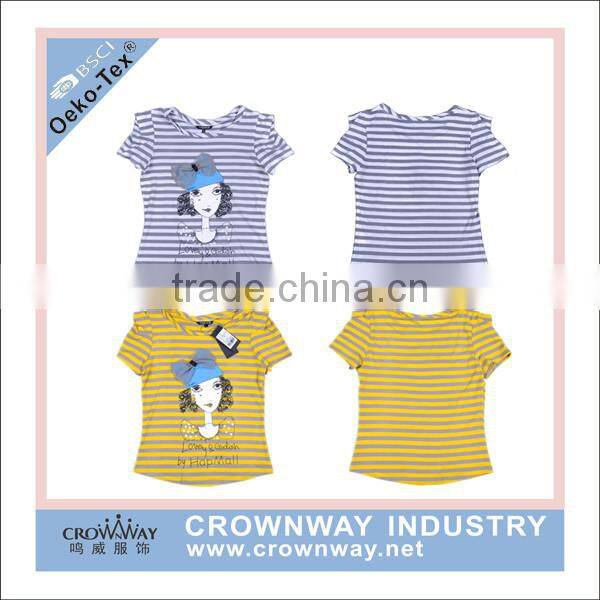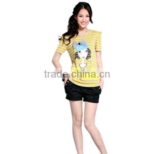 Ladies Yarn Dry Striped Cotton Custom T Shirt With Printed Pattern