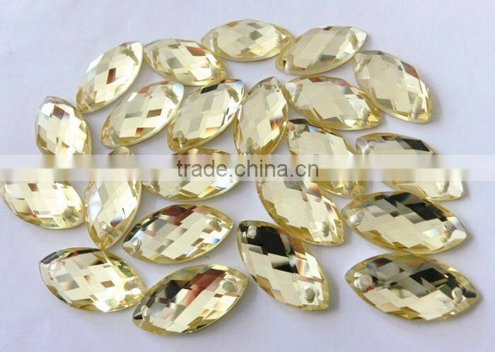 Mirror glass flat back stone are widely used in garment accessories, have more than 30 different shapes with complete sizes,more than 35 different colors. If need, we can dug holes on the stone, so that you can sew it on the garment more easily. The quality is highly praised by customers at home and abroad.