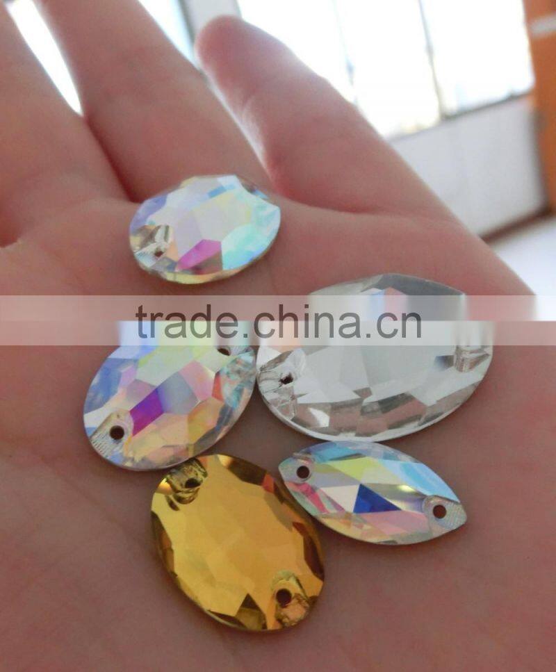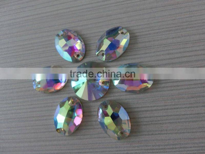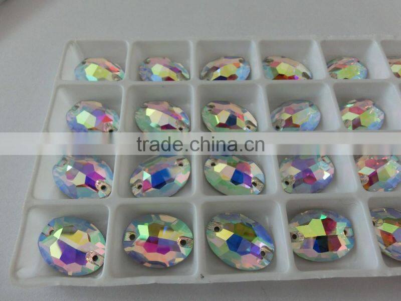 ab Color Oval Sew-on Crystal Lead Free Glass Bead Flat Back for Clothing