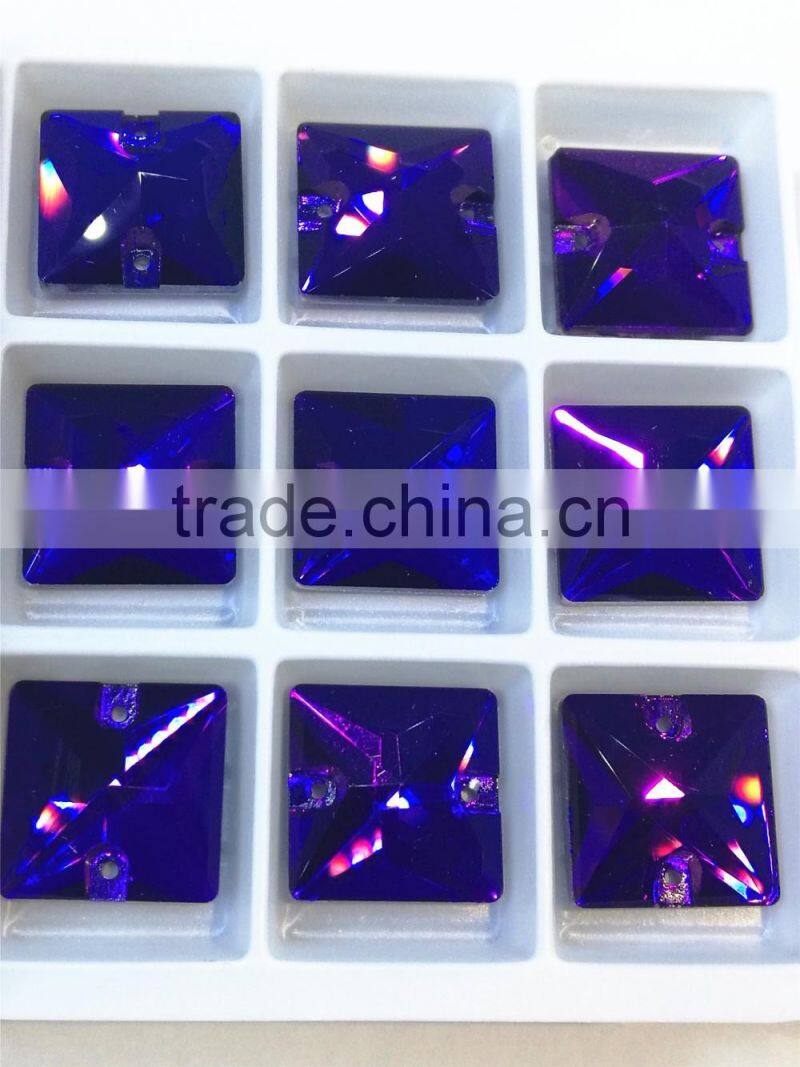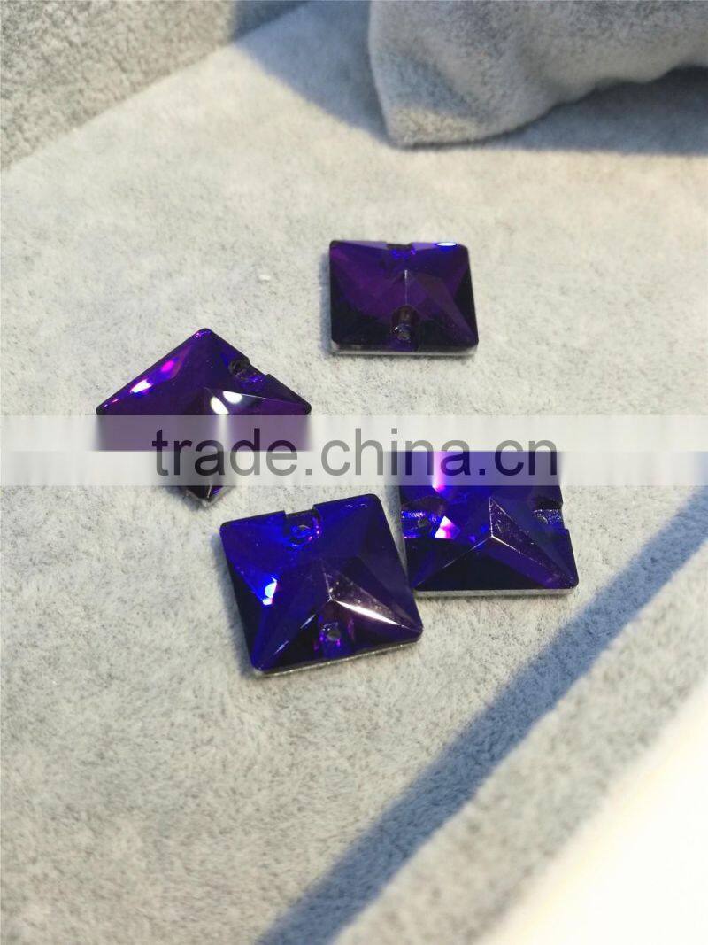 High Quality Square Faceted Crystal Sew on Stone Flat Back Pendant for Garment Accessories