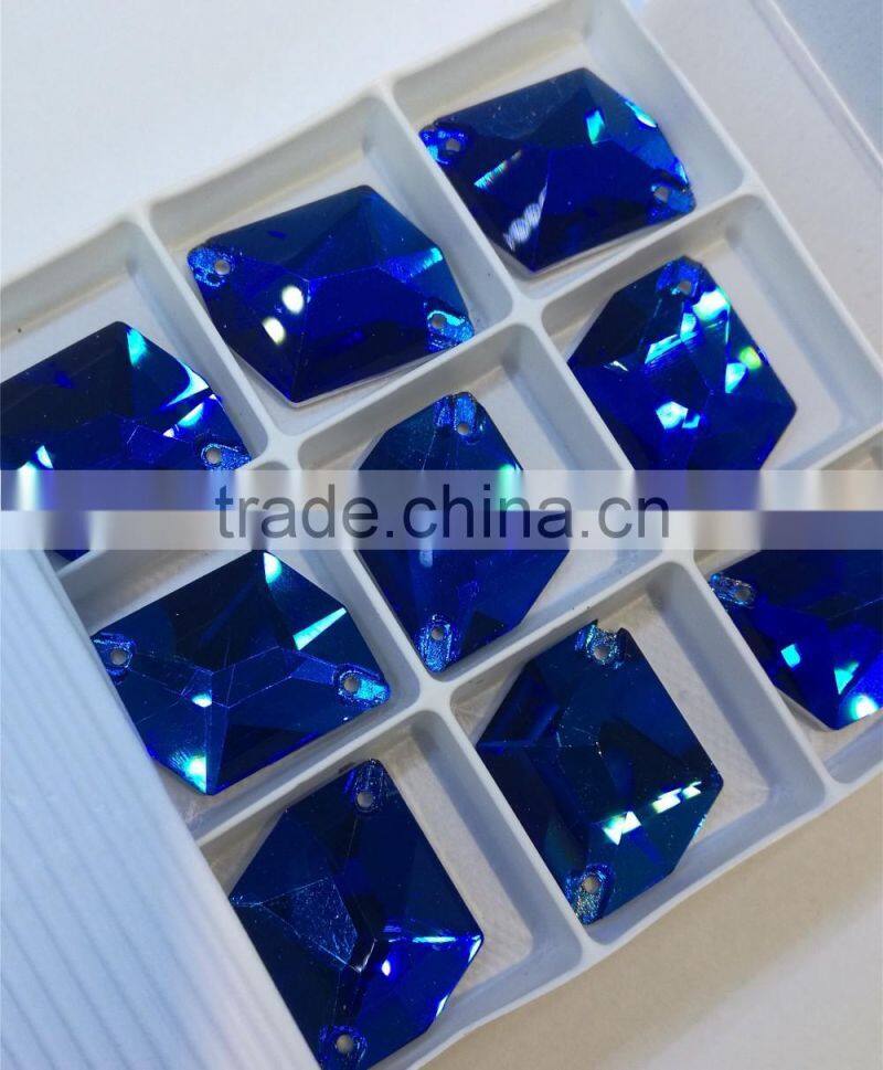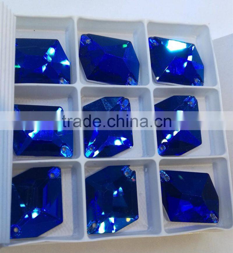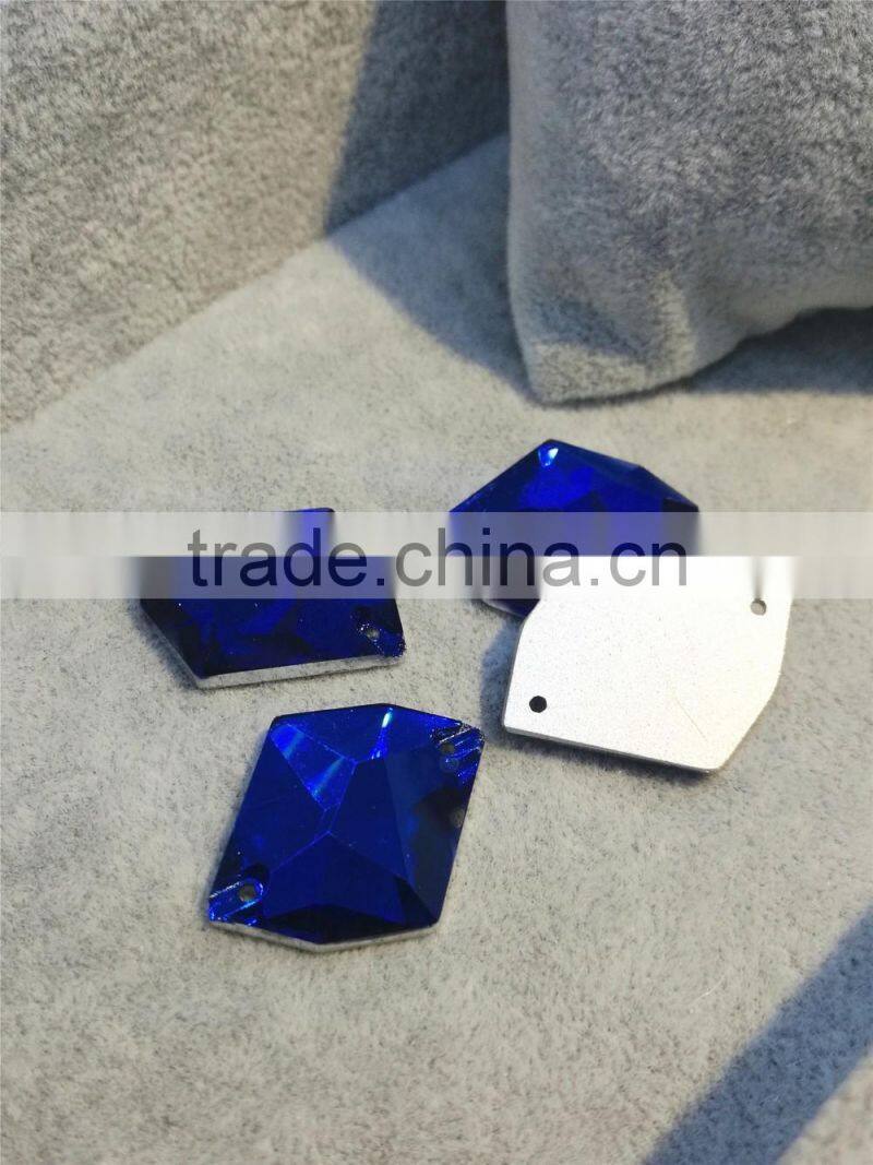 Capri Blue Dysmorphism Shape Flat Back Crystal Sew on Stones Glass Pendant for Jewelry Accessories