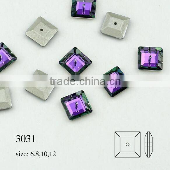 Square Shape Flat Back Crystal Sew on Stone Glass Loose Beads With Hole for Jewelry Decoration