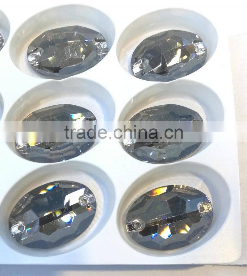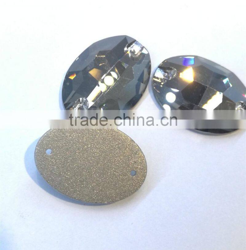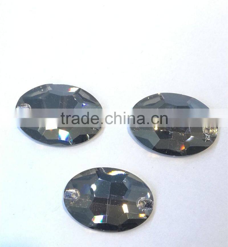 Black Diamond Flat Back Sew on Crystal Facncy Stone Glass Beads With Holes for Jewelry Making