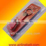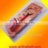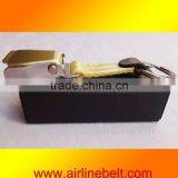 This highly realistic seatbelt-buckle key chain can be with any type of logo mimics an actual aircraft seat belt at about half the size of a real one. Enjoy endless satisfaction releasing the upper lever then listen for that satisfying "click" sound when closing the buckle. Rest easy knowing that your keys are safely stowed and ready for take-off!