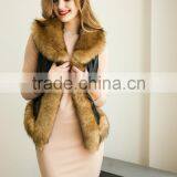 European 2016 New Latest Winter Faux Sheep Leather With Fox Fur Vest Woman Vest
