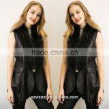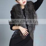 2016 Europe Hot Sale Latest Design Winter Sheep Leather With Faux Fox Fur Collar Vest Fashion Warm Woman Vest
