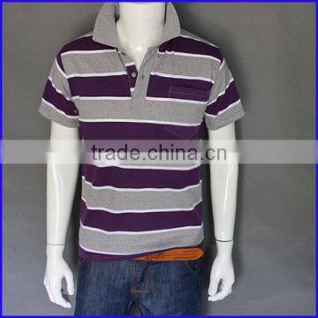 2016 new model 100% cotton mens` short sleeve strip polo shirt with rib collar