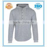 Hooded Henley Raglan Sleeves Hoodie Chambray Trim Button Placket Hoodie Curved Hem Hoodie