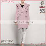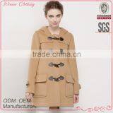 OEM/ODM Manufacturer Elegant Casual Style Free Size Hooded Woolen Overcoat for Women 2015