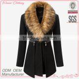 High Fashion Slim Fit England Style High Quality Office Wear Fur Collar Design Black Woolen Coat Woman