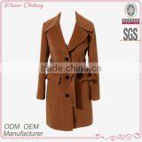 OEM/ODM Manufacturer Camel Knee Length Wool Cashmere Coat for Women