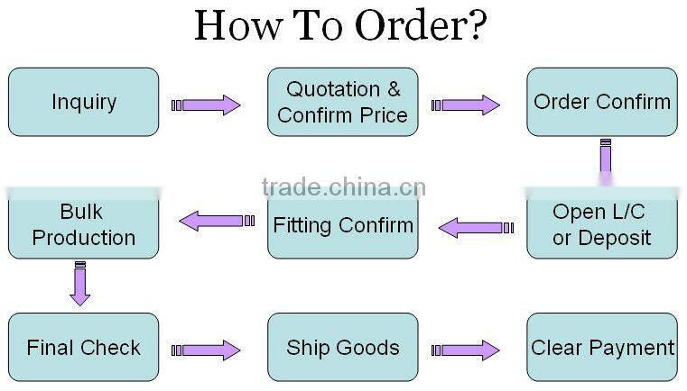 Quality Control: Raw material random check, fabric check report, on line check report and 100% final check before shipping.