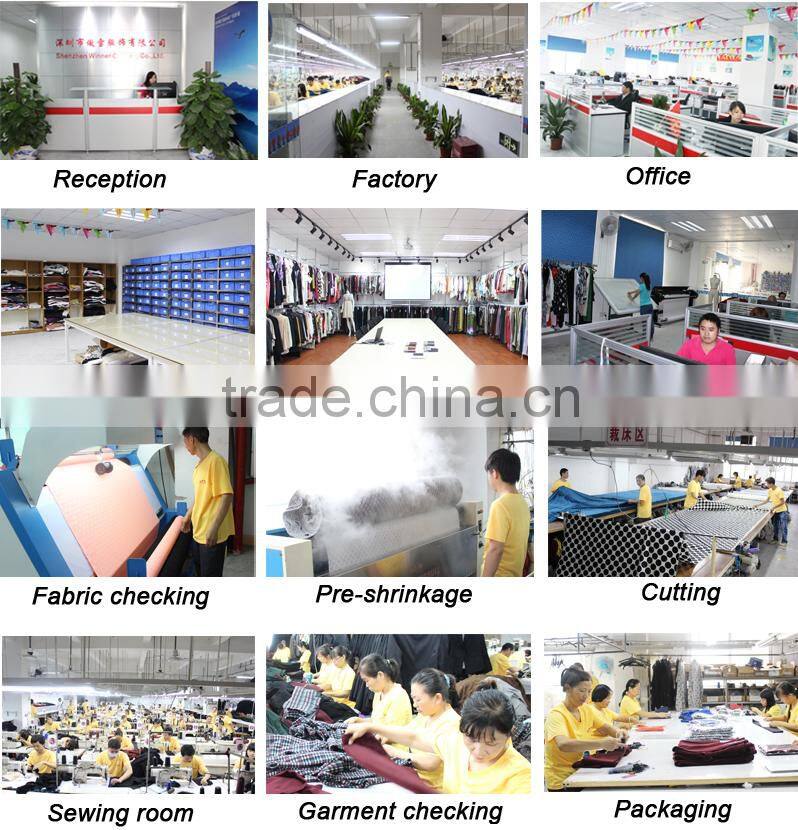 Shenzhen Winner Clothing Co., Ltd. was founded in 2001. We are strong in fashion garments such as ladies' blouses, jackets, coats, dresses, pants, skirts, etc. in main fabric of cotton, linen, viscose, silk, wool, tencel, polyester and blended fabric. We have two factories with around 360 workers and an output of 150,000 pieces per month. Our main customers are Charlie Brown, Howard Showers, Melvin, OVS, Northern Reflectio, Maurices, Christina, OVS, West Land, Top Shop, etc. Our main markets include Germany, the UK, the USA, France, Spain, Italy, Russia, Australia, etc. We have a technical dept. with 10 technicians. We can develop new samples and patterns in a quick time. We can make garment based on customers' styles and we can also offer our own styles with customer's brands and logos. We are expanding and hope to find more customers here to build up long term business relationships. If you are interested, please feel free to contact us!