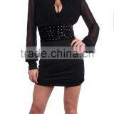 2015 Fashion Ladies Black Studded Bodycon Dress