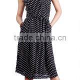 2015 Top Quality Best Price Black & White Sleeveless Dot Long Dress With Pocket
