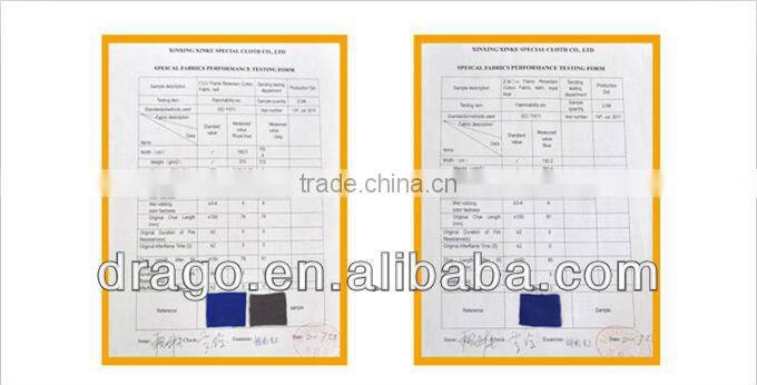 | Weight | 260GSM | Certification | EN11611,EN11612,EN533 ,EN13034,NFPA2112 | |