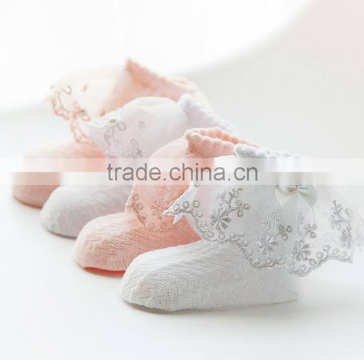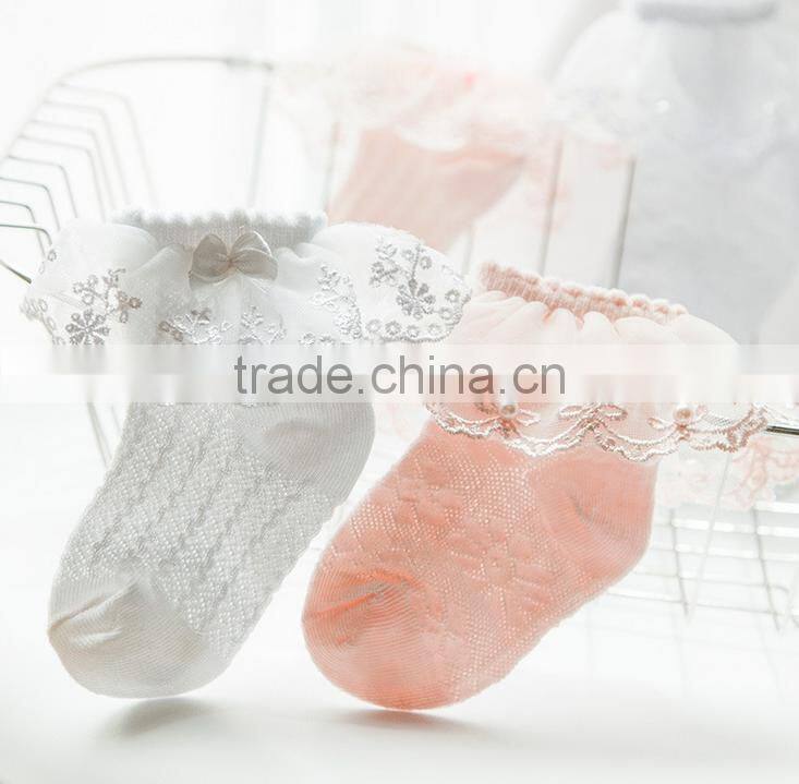 Individually package summer baby mesh pearl lace cotton thin socks