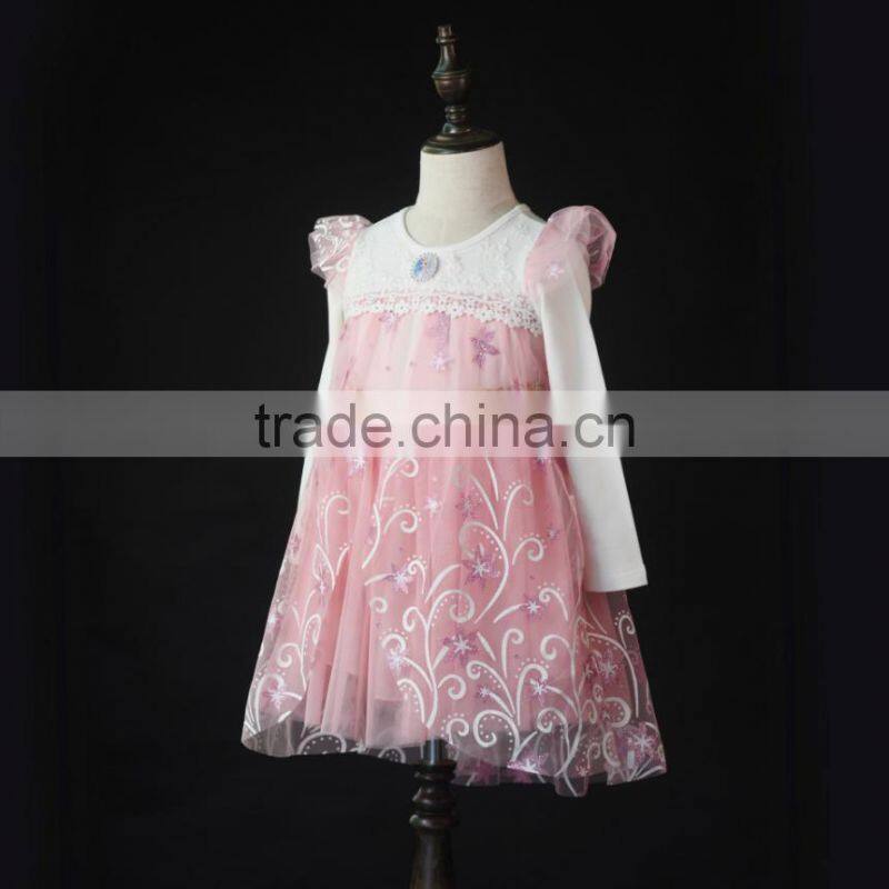 2017 New Party Embroidery Dresses Floral Flare Flower Embroidered Dresses For Girls