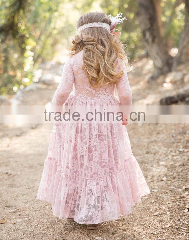 2017 Girl Lace Long Dress With Sweet Flower For Age Baby Kids Princess Wedding Prom Party Dress