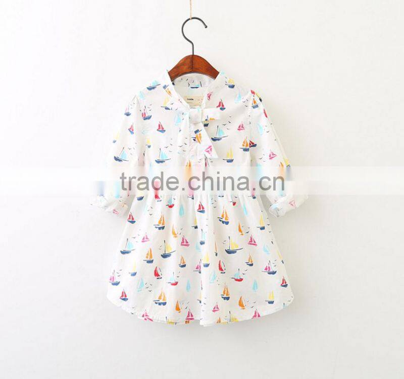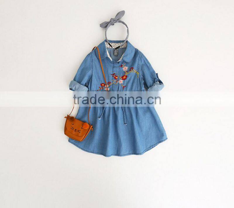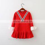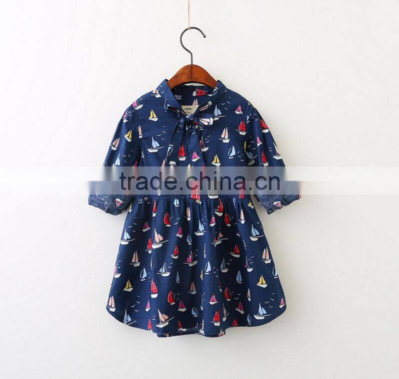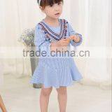 2017 Girls Dress Autumn Thin V Design Navy Dress Long Sleeved Girls Child Doll Dress