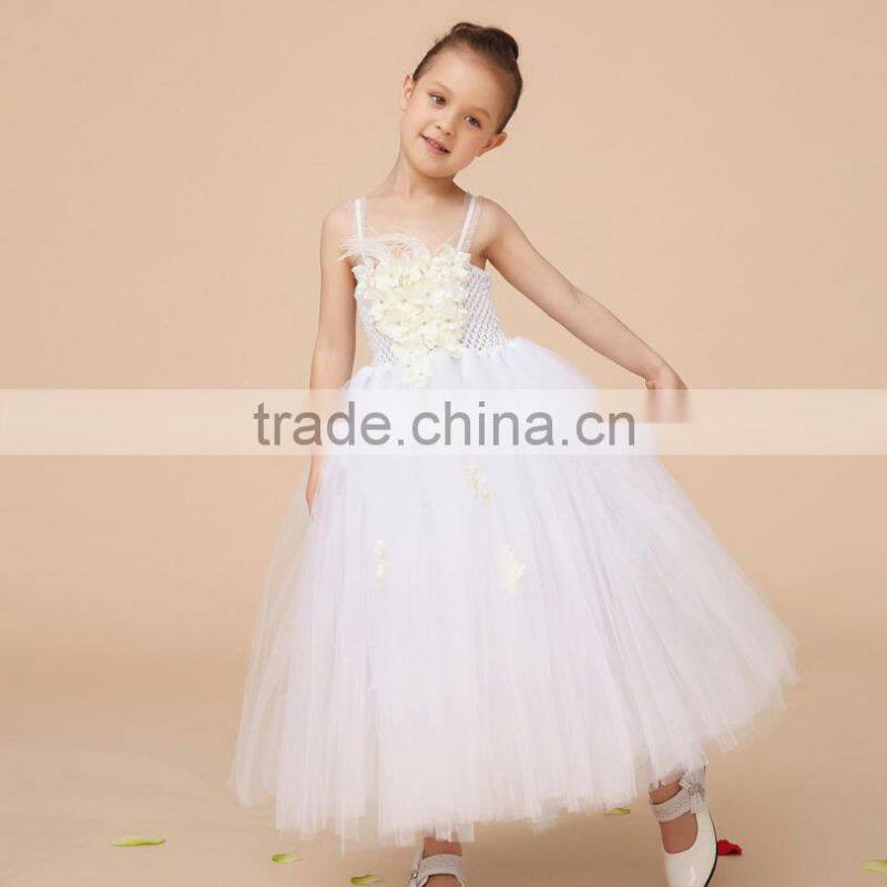 White Spaghetti Straps Princess Flower Girl Dress For Weddings Girls Party Pageant Dress