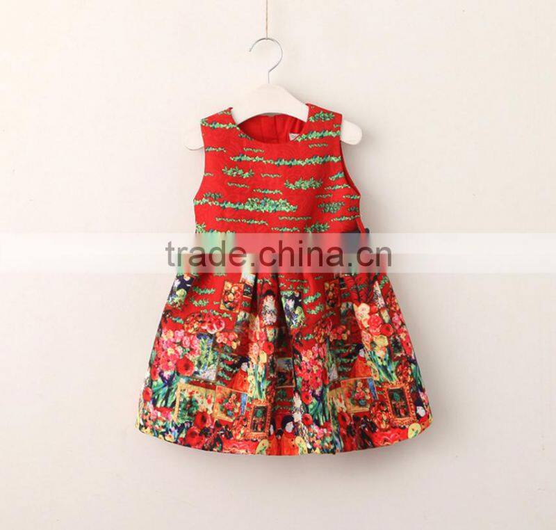 European Style Summer 2017 Children Dress for Kids Floral Print Dress Girls Sleeveless Princess Dresses