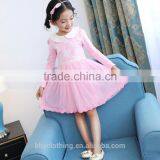 Pink Kids Baby Girls Princess Dresses Long Sleeve Embroidered Tulle Lace Party Dress