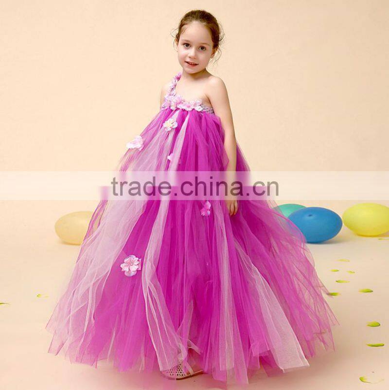 One Shoulder Cheap Flower Girl Colorful Ankle Length Tutu Dress Toddler Kids Birthday Party Dresses For Photo Props
