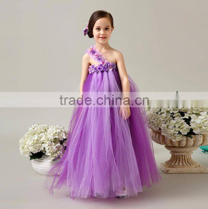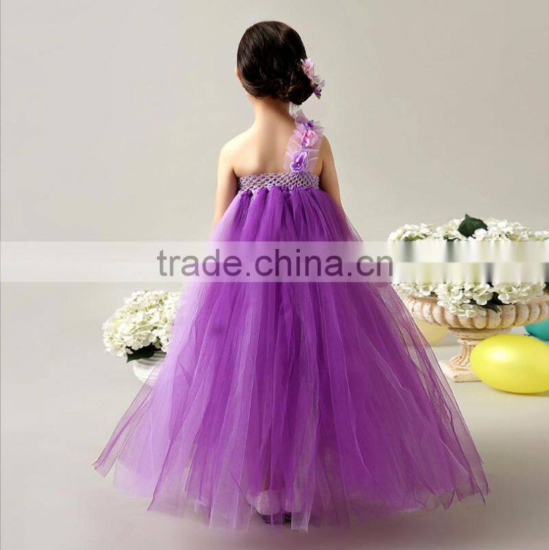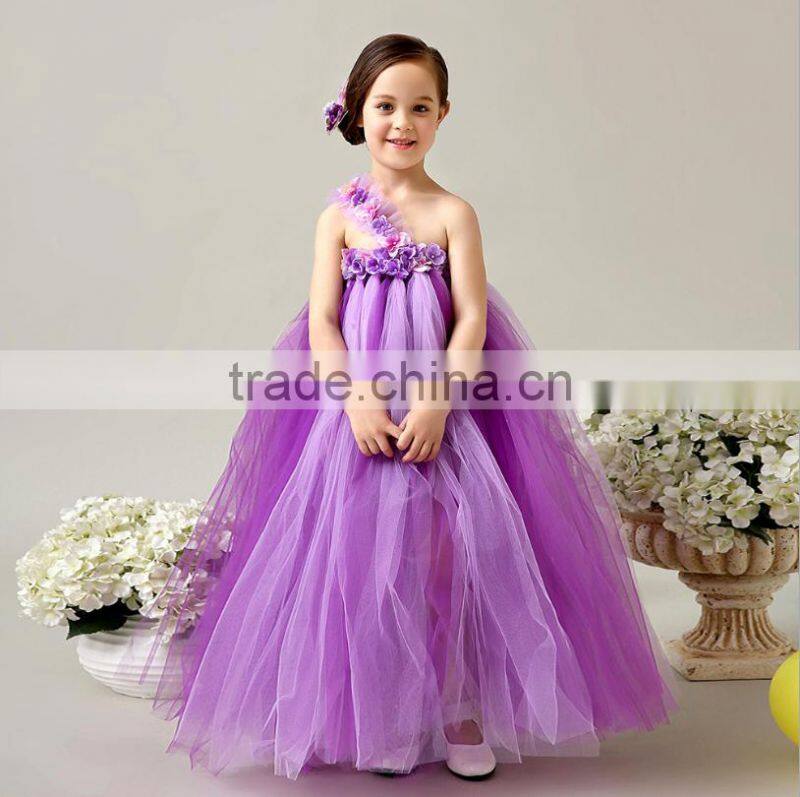 New Pretty For Girls Cheap Costume Pageant Dress Floor Length One Shoulder Tulle Net Flower First Communion Dress 2017