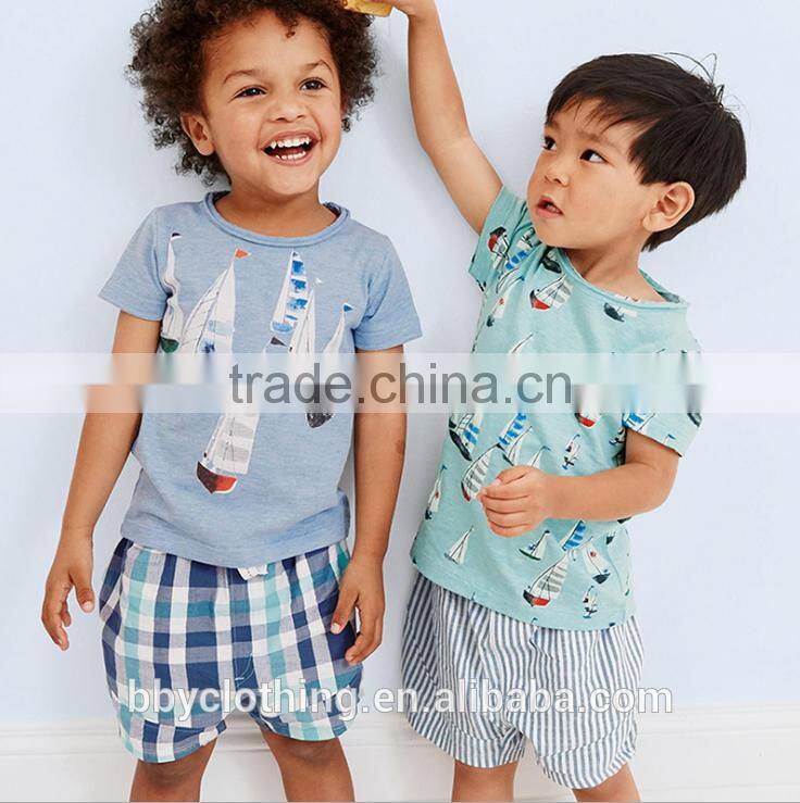 2017 Wholesale Baby Boy Clothes 100% Cotton Kids Short Sleeve Clothing Set