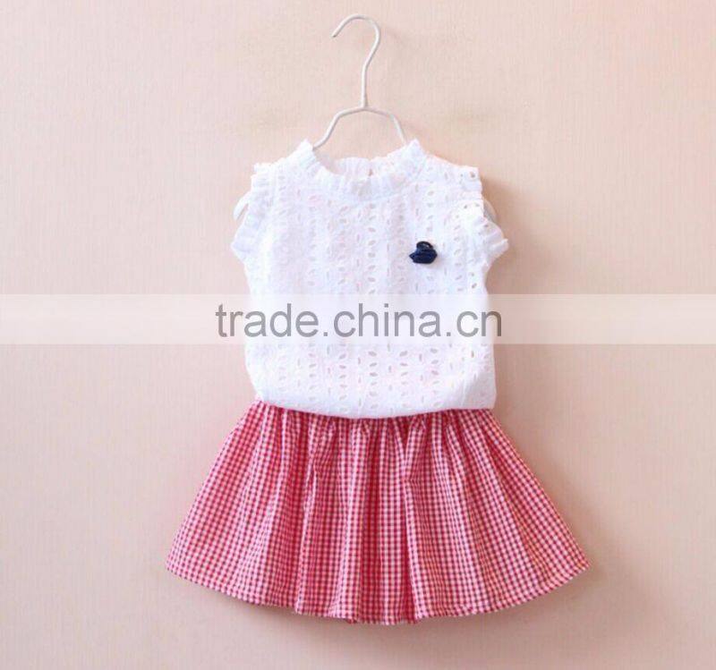 Wholesale Baby Girl Boutique Clothing Sets White Shirts and Dress 2 Piece