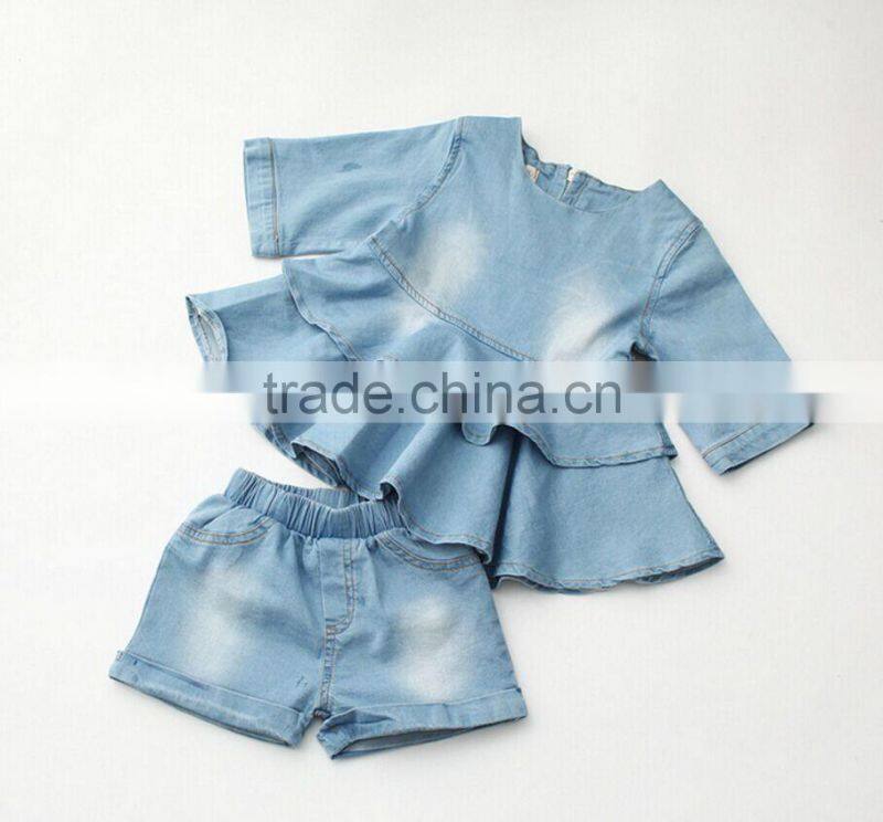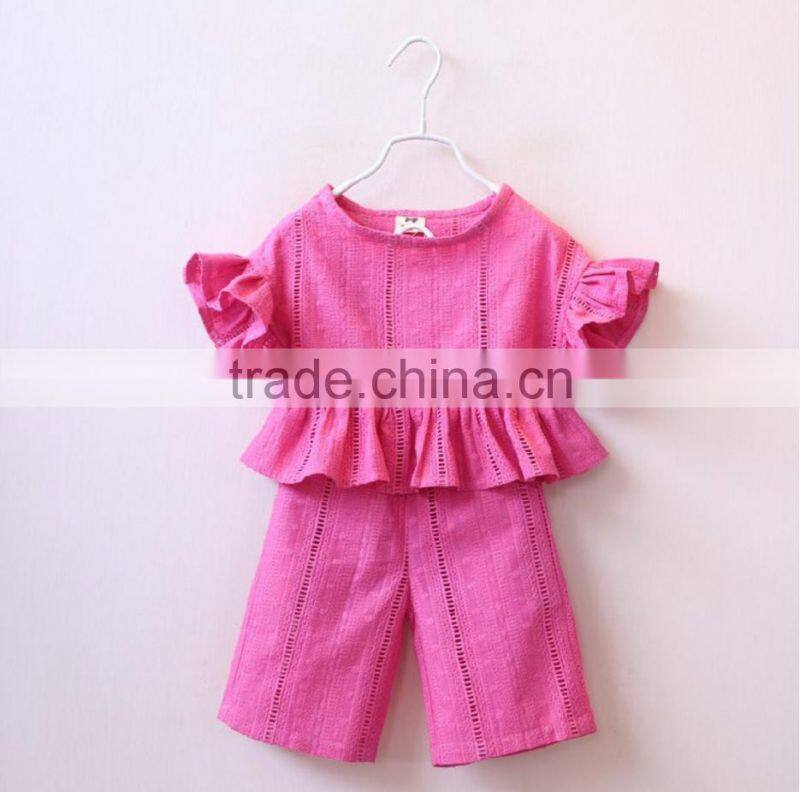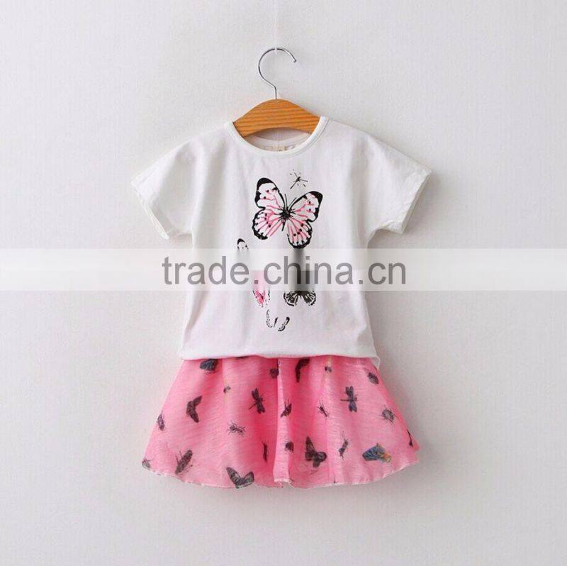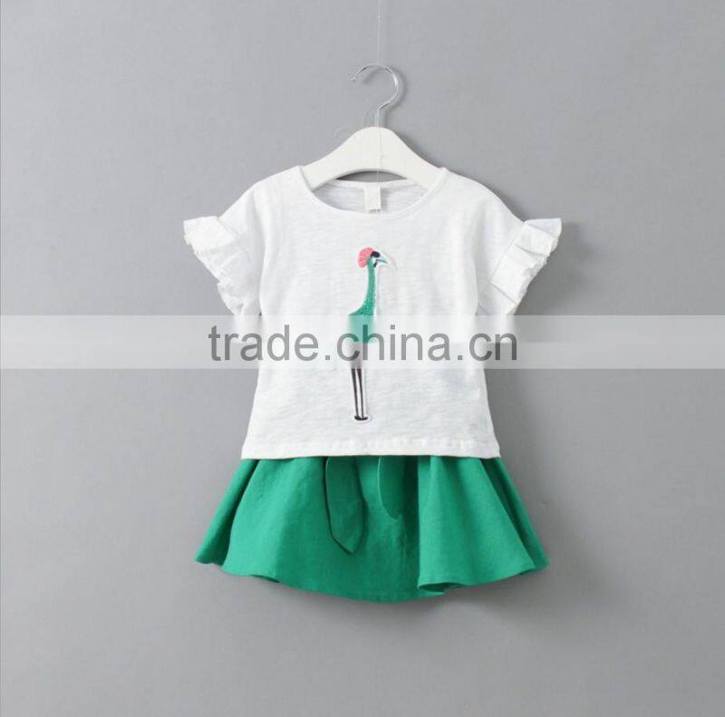 High Quality Baby Girl Baby Clothes Set Fly Sleeve Tee Shirt and Overalls Skirt Two Piece