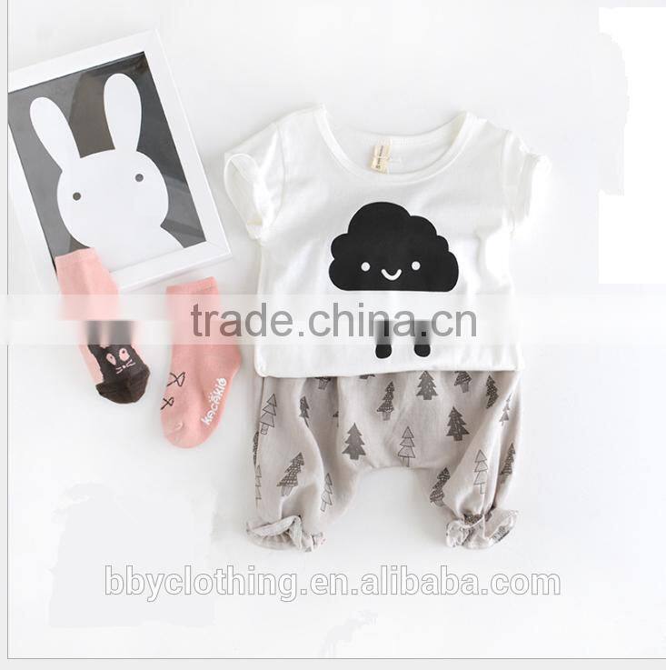 Children Clothing 2016 Set Cotton Short-sleeve Tee and Pants Two Piece for 1-6 Years Baby