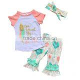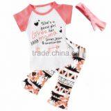 Autumn 2016 Three-piece Children's Clothing Letters Printed T-shirt + Pants + Headbands