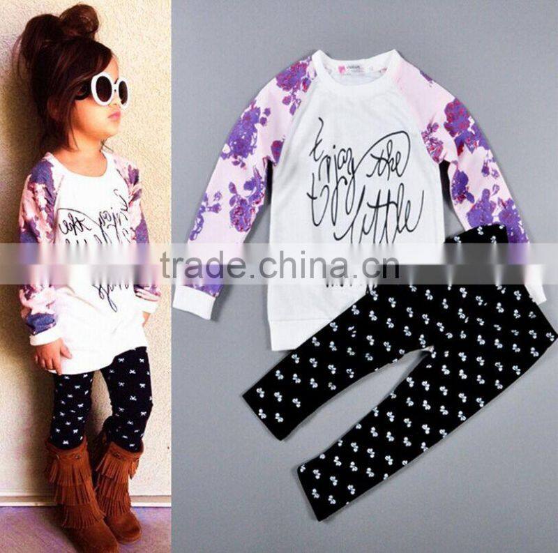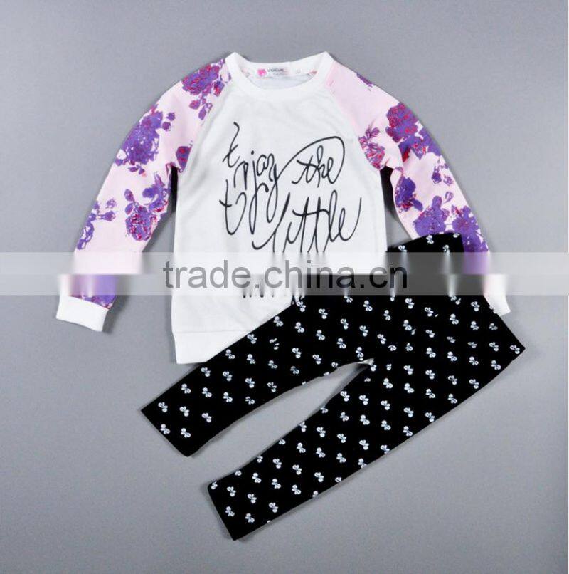 Wholesale baby girls hoodies set long sleeve o neck hoodie and pants for 2-6 years baby