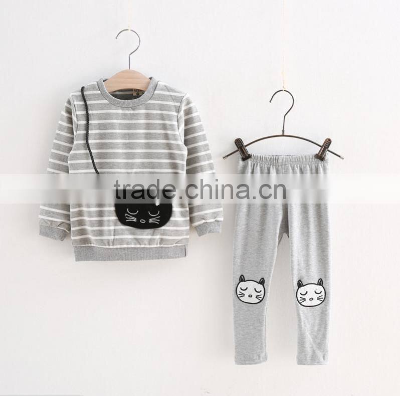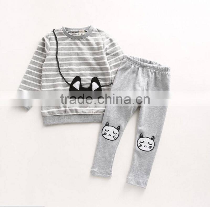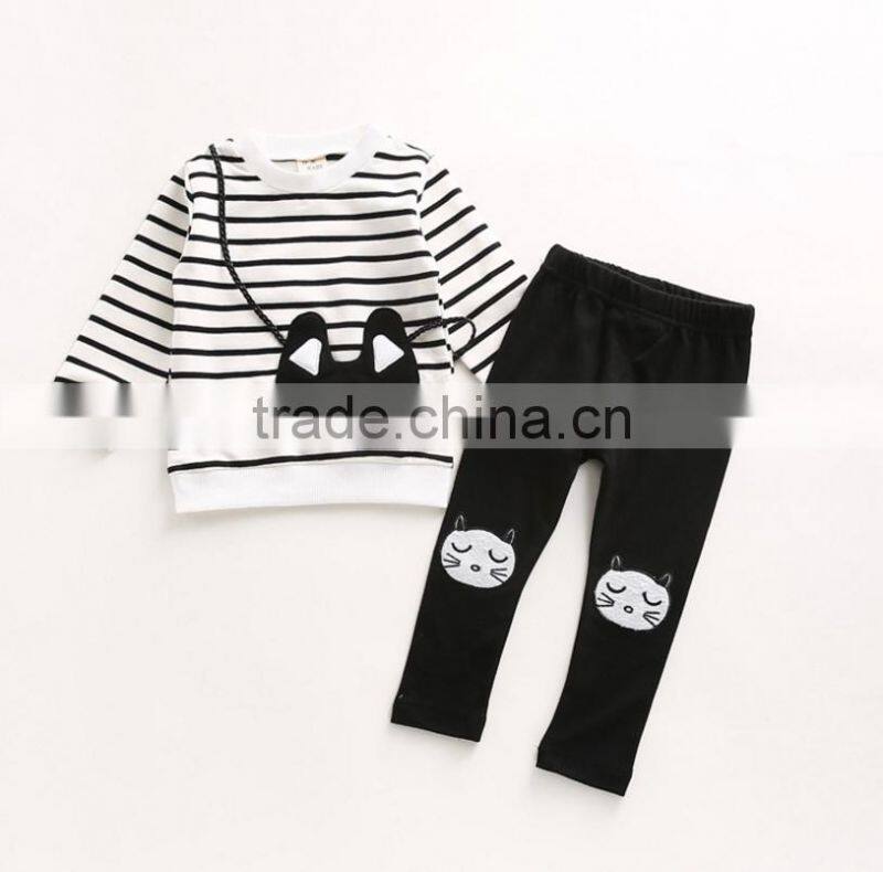 Kids outfits cheap baby girl clothes sets stripe kitty backpack long sleeve t-shirt + leggings