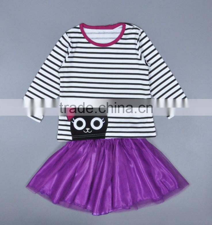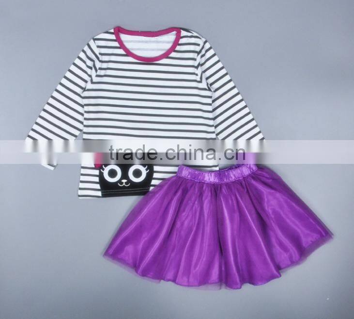 Cartoon kitty stripe long sleeve T-shirt and short skirt 2 piece set for 2-6 years