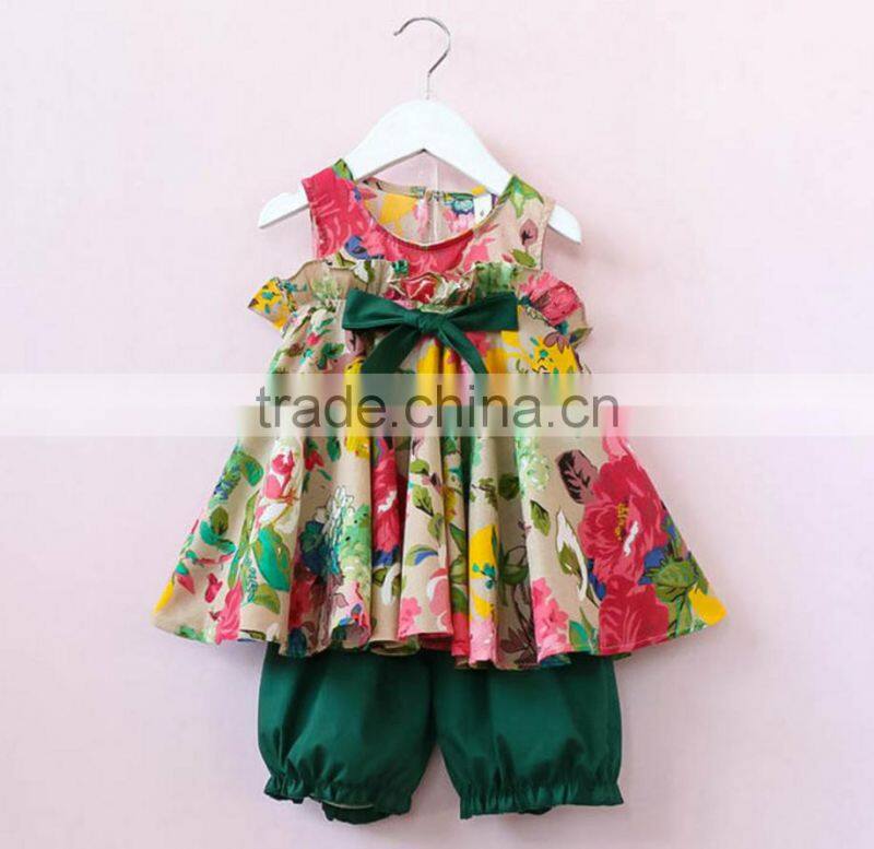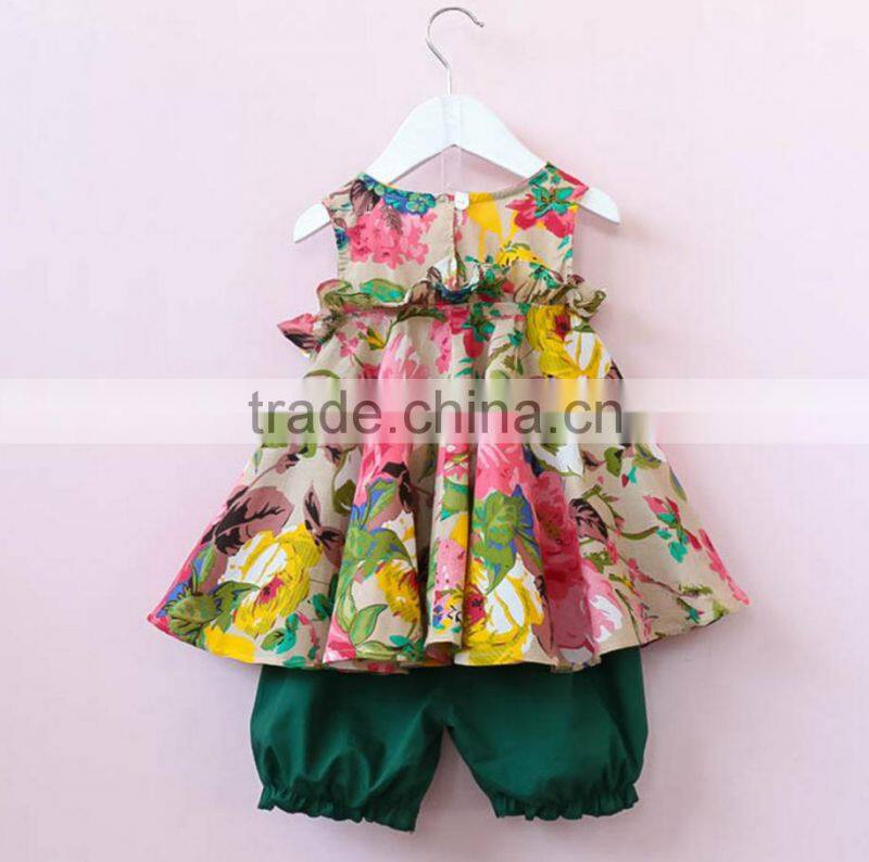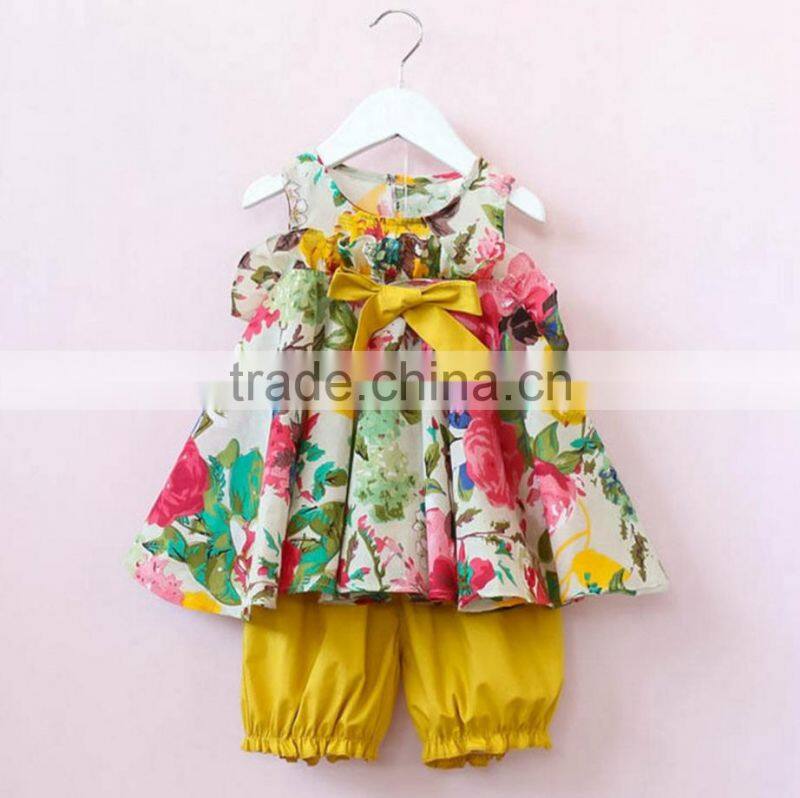 BBY6021 Fashion Clothing 2017 Child Girls Flower Tops and Shorts Two Piece Sets