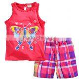 2 Pcs Baby Girls Clothing Butterfly Vest +lattice Shorts Children Sets for Summer 2016