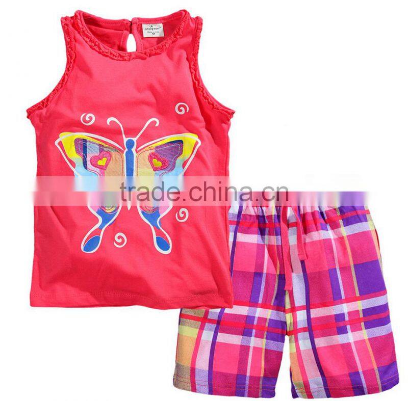 2 pcs baby girls clothing butterfly vest +lattice shorts Children sets for summer 2016