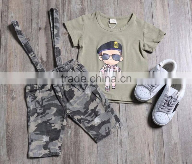 Camouflage clothing baby boys two-piece suit carttoon characters printed T-shirt + overalls twinset for kids boy